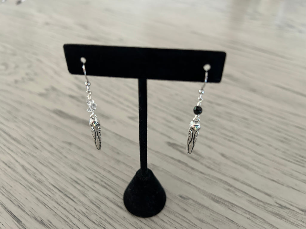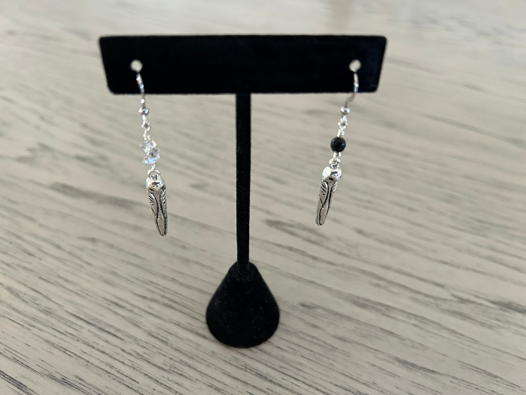 Black Onyx & Herkimer Diamond Owl Dangle Earrings
