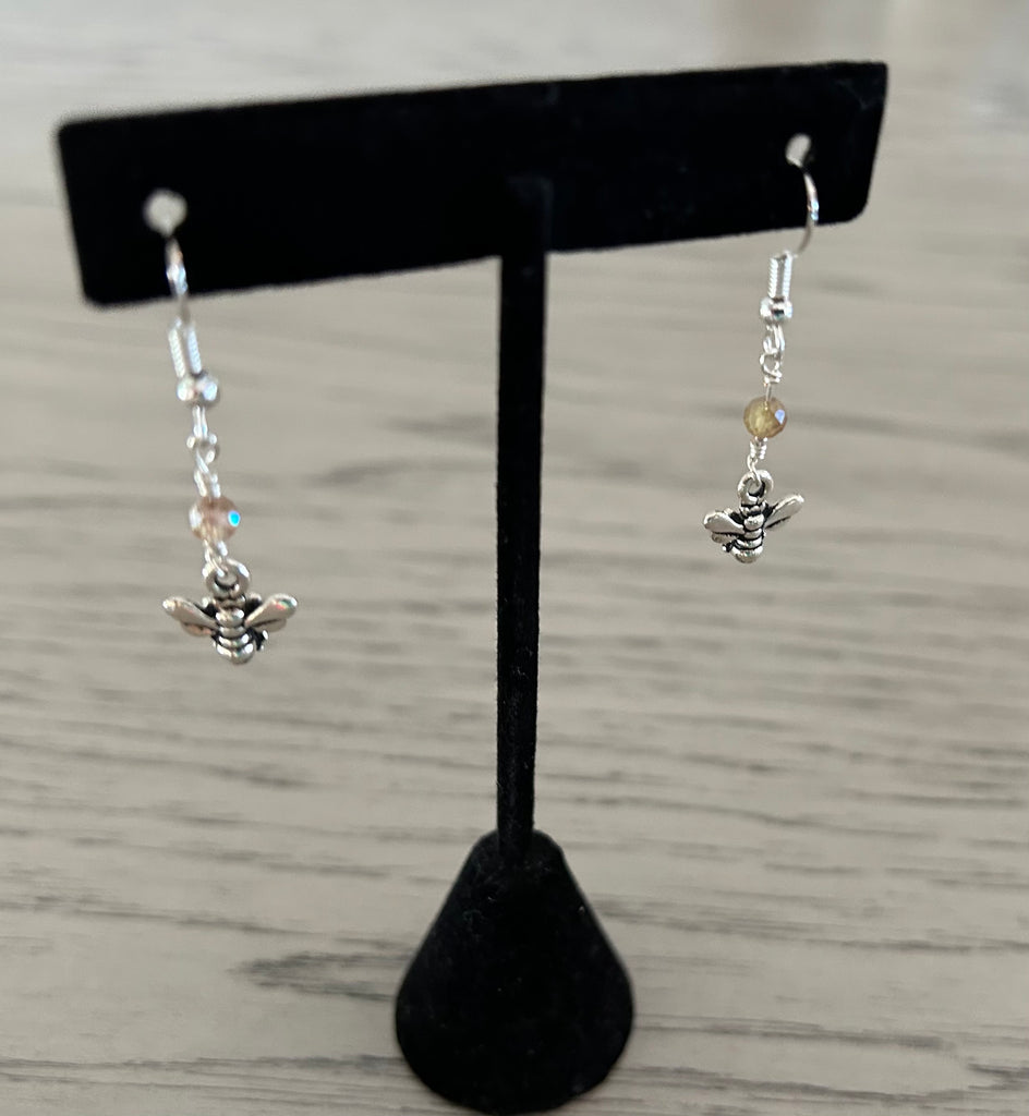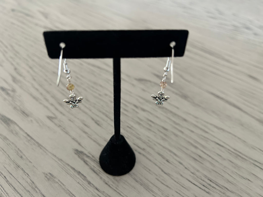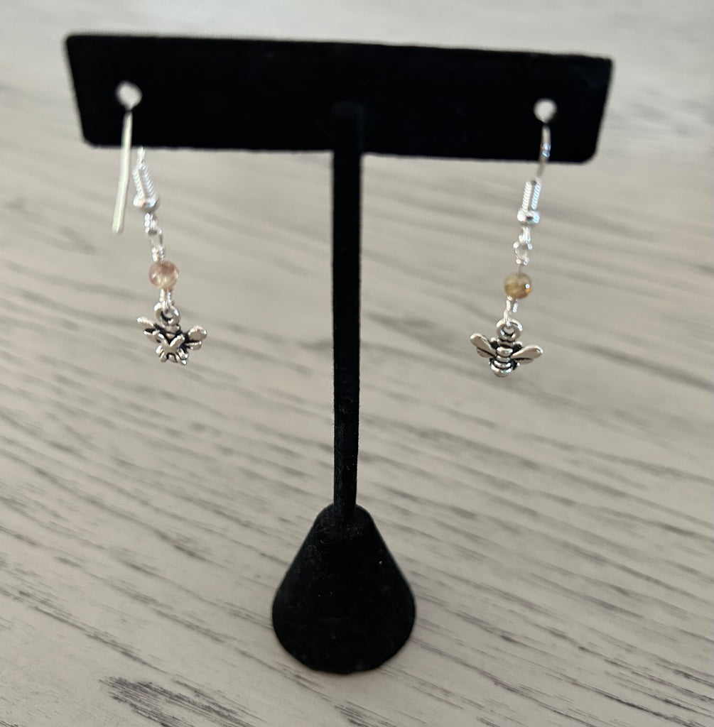 Expertly crafted dangle earrings featuring luminous 4mm Golden Zircon beads paired with delicate bumble bee charms. These earrings strike the perfect balance between elegance and whimsy, making them an ideal accessory for nature enthusiasts. The premium materials ensure both durability and a sophisticated shimmer that catches the light with every movement. Approximately 1.5 inches in length.