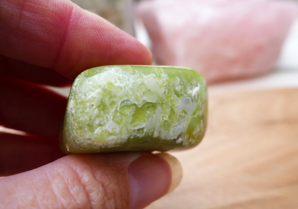 I purchased this lovely stone directly from a small family mine in Washington state. The owner hand-mined and tumbled his stones, and the care given to them is apparent as soon as you hold one. Noble Serpentine is also known is the crystal community as Healerite. Healerite is a very powerful crystal, and recent discovery-- only found in the United States. I resonate with the miner's classification for my crystals. This batch does have some veins of healerite in them (the lighter, more translucent green tones) and the mine itself does have deeper veins of healerite that will be uncovered soon (according to the mine owner). I've included both descriptions below.