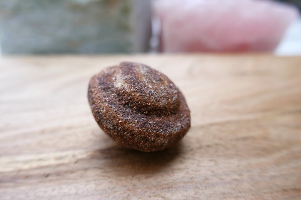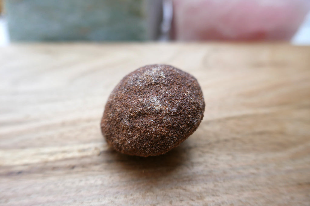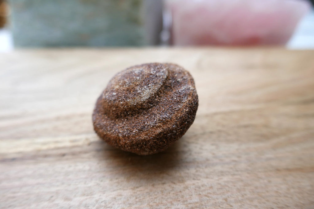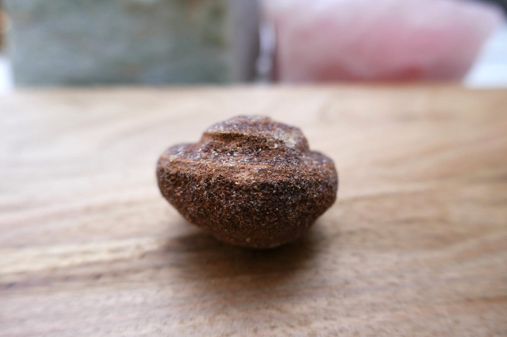 This lovely moqui marble, also known as a shaman stone is ready to ground your crystal collection and elevate your kundalini practice. This specimen originates from Utah. This stone is perfect for grounding and protecting your crystal grid or helping you process an intense situation of grief, mourning or simply warding off negativity.