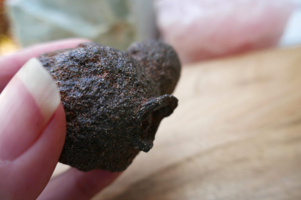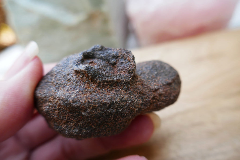 This lovely moqui marble, also known as a shaman stone is ready to ground your crystal collection and elevate your kundalini practice. This specimen originates from Utah. This stone is perfect for grounding and protecting your crystal grid or helping you process an intense situation of grief, mourning or simply warding off negativity.